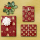 Gold Christmas Tree and Poinsettia Patterns on Red Wrapping Paper Sheets