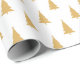 Gold Christmas Tree Pattern On White Wrapping Paper