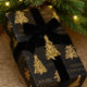 Wrap your Christmas gifts in this elegant gold Christmas tree and snowflake pattern on black paper. This stunning paper can also be used for your Christmas crafts.