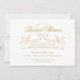 Celebrate the bride-to-be with this elegant Gold Cinderella bridal shower invitation. Featuring the iconic Cinderella carriage surrounded by intricate gold accents and delicate floral details, this design exudes sophistication and fairy tale charm. Perfect for a Disney-inspired or storybook-themed bridal shower, it sets a magical tone for an unforgettable celebration. Customize with the bride's name, event date, and party details for a personalized touch.