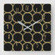 Gold Circles & Black Modern Trendy Chic Square Wall Clock