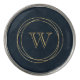Personalize these golf ball markers with a gold monogram initial in open serif font framed by three irregular gold wire circles on a dark blue, nearly black faux leather background.