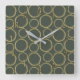 Gold Circles & Rustic Olive Green Modern Chic Square Wall Clock