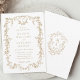 Plain white envelopes are included with paper invitations and will come to fit the invitation size you select. If you don’t need the envelopes, you may choose to not receive them by selecting the dropdown below "Envelopes" and choosing "None." If you’d like to have a design on your envelopes, you can browse all of these available envelopes to find the design that complements your Gold Classic French Victorian Floral Wedding Invitation.