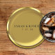 Elegant round gold coin wedding coaster. Customize it by adding your event details. Great for a formal / luxury look and feel.