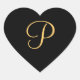 Gold-colored initial J on black monogram heart-shaped sticker.