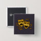 Vector illustration of gold comedy and tragedy theater masks with a gold ribbon. Tags: acting, actor, cinema, comedy, drama, film, frown, grief, happy, humor, joy, laugh, mask, movies, performance, sad, theater, tragedy, smile, theatre, dinner, live, gold, metal