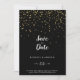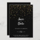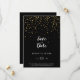 This Gold Confetti | Black wedding save the date is perfect for a simple, classy wedding. The elegant whimsical design features faux gold glitter confetti and minimalist calligraphy on black with a modern boho feel.