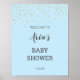 Gold Confetti Blue Baby Shower Welcome Sign