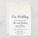 Plain white envelopes are included with paper invitations and will come to fit the invitation size you select. If you don’t need the envelopes, you may choose to not receive them by selecting the dropdown below "Envelopes" and choosing "None." If you’d like to have a design on your envelopes, you can browse all of these available envelopes to find the design that complements your Gold Confetti Calligraphy Our Wedding Invitation.