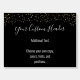 Add your own wording to this wedding-themed sign. The top was covered in a graphic that depicts festive faux gold confetti that seems to fall and dance from above. The custom fields can be changed to any text you prefer; fonts and colors can likewise be changed, as you see fit. Make this sign your own!