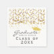 Gold Confetti Class of Graduation Napkins. Trendy script with golden confetti and a golden graduation cap. Add your grad’s name. You can change the year number.