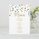 Gold Confetti Dark Blue Wedding Menu