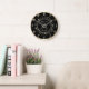 Gold Confetti Dots Black 25th Wedding Anniversary Large Clock
