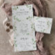 This gold confetti eucalyptus foliage trifold wedding is perfect for a simple wedding. The design features watercolor eucalyptus green foliage with gold confetti.