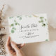 This gold confetti eucalyptus horizontal wedding save the date is perfect for a rustic wedding. The design features watercolor eucalyptus green foliage with gold confetti.