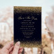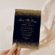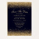 Gold Confetti Navy Blue Modern Save the Date Card. Beautiful simple vintage glam gold confetti against a navy blue background. This custom modern design can easily be personalized with your own details.