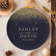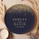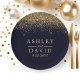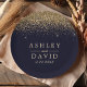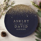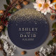 Gold Confetti Navy Blue Modern Wedding Paper Plate. Beautiful simple vintage glam gold confetti against a navy blue background. This custom modern design can easily be personalized with your own details.
