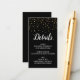 This Gold Confetti on Black Retirement Party details insert card is perfect for an elegant retirement party or any celebration. The stylish design features faux gold confetti with simple white calligraphy on a black background. It co-ordinates perfectly with the Gold Confetti on Black Retirement Party Invitation.