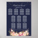 Elegant with a vintage touch design featuring faux gold confetti, pink blush watercolour flowers, on a midnight blue background. You can personalize this template, change background color, fonts. For matching items, please, visit my Whimsical Lace Collection. 10 Tables.