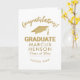 Gold Congratulations Graduate Graduation Cap Card. Modern design with a black graduation cap. Personalize the card with graduate's name, school name and the year of graduation. Add your message inside or erase it. Congratulate your high school or college graduate for graduation.