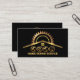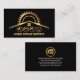 An all black cover features a creative gold rooftop with a rising sun (the electric saw) with a set of gold tools underneath i.e. the hammer, hand drill, roller brush and garden spades. Each of these tools can represent some of the work or service that you might offer e.g. the electric saw can represent carpentry, the roof for roofing, the hammer for home repairs, the spanner-sprocket for home mechanical repairs, brush for painting and finally the spades for landscaping gardening. Each tools representation is left to your own interpretation. Near the base of the card is the business name.