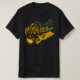The perfect tee for the fan of gold mining, coins, and country goodness. Features golden eagle, golden scroll patterns, silvery puffs with golden stars, and cool custom text. Enjoy!