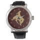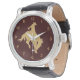 This watch features what everyone knows about Wyoming. Horses buck and cowboys ride 'em! It features a gold cowboy and bucking horse silhouette image on a dark brown background. *This design uses image © Graphics Factory.com*