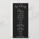 The front of this sleek black program elegantly showcases the couples' names, the significant wedding date, venue details, and comprehensive ceremony information. Against the refined black backdrop, these crucial details are presented in a clean and legible block font, ensuring easy readability and sophistication. Adding a touch of grace and refinement, the words "Welcome," "Ceremony," and "Wedding Party" are delicately rendered in an ornate decorative script font, lending an exquisite visual appeal.
