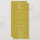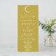 Flipping over to the reverse side, you'll discover a meticulously organized list featuring the esteemed members constituting the wedding party. The resplendent gold hue coupled with the mesmerizing gold crescent moon captures a celestial essence, creating an atmosphere of cosmic elegance for couples seeking celestial or mystical themes for their wedding.