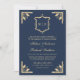 Gold Crest Monogram QR Code Navy Blue Wedding Invitation