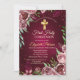 Gold Cross Burgundy Roses First Holy Communion Invitation