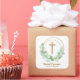 A gold faux glitter cross and eucalyptus leaves wreath are featured on these square stickers with your personalization in a chic lettering. Perfect for your child's baptism, christening or first communion. MATCHING items available in our store.