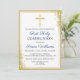 Gold Cross Glitter Navy Blue First Holy Communion Invitation