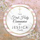 Gold Cross Pink Stripe First Holy Communion Classic Round Sticker