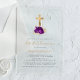 Gold Cross Purple Floral First Communion Acrylic Invitations