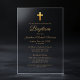 Gold Cross Script Typography Chic Elegant Baptism Acrylic Invitations