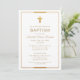 Gold Cross Script Typography Chic Elegant Baptism Invitation
