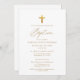 Gold Cross Script Typography Chic Elegant Baptism Invitation
