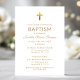 Gold Cross Script Typography Chic Elegant Baptism Invitation