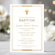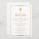 Gold Cross Script Typography Chic Elegant Baptism Invitation