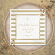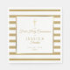 Elegant gold and white striped First Holy Communion paper napkin featuring a gold cross with a chic faux gold foil border that frames the celebration event details set in modern text. Personalize with your child's name and special date. Designed by Thisisnotme©