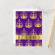 Gold crowns on purple postcard