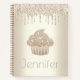 A sparkly, chic, champagne gold cupcake, elegant typography and glitter drips overlay a faux metallic champagne gold ombre background on this trendy, simple, modern custom name spiral notebook. Additional champagne gold glitter drips adorn the back. Personalize with your name. 8 different inside paper designs to choose from. Makes a stylish statement every time you use it. A great gift for back to school!