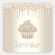 Gold cupcake glitter drips name modern glam luxury square sticker