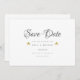 This chic save the date card features gold cupids either side of your names and your save the date details set in classic elegant typography.
