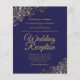 Gold Curls on Navy Wedding Reception BUDGET Invite