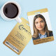 Make a strong impression with this sleek gold employee badge featuring your photo, name, title, barcode, and company branding. The professional layout includes return information on the back, making it ideal for executives, staff, and corporate teams who want functional, stylish identification.