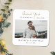This simply chic wedding coaster features words of thanks above your favorite photo and your first names and date below it. We've chosen a warm, modern script for 'Thank You' and added 'for sharing our special day' underneath, with that line separated by the the loop of the 'Y', enhancing its relaxed, intimate charm. This message makes this coaster well suited for your wedding party as an expression of your gratitude and joy in that very moment. The text is a very dark gray that is in fact mostly black, except for the the 'thank you' script, which we've highlighted in an elegant gold tone called California Gold.You can of course change any of the text to any color that suits your style and your day, be it true black or another hue. You can also choose a different font for any or all of the text. You might even want to change the thank you wording or other text to something completely different. We've chosen a clear background, which lets the color of the coaster simply serve as the base tone, but you can choose a color instead. Use the intuitive design tools, your favorite photo and your inspiration to make this wedding coaster uniquely yours and something that's bound to be tucked away and taken home by your guests without being used. So you might want to order extra! ;)