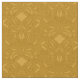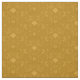 This fabric is a half drop pattern of a gold colored damask like repeat pattern, a scrolly motif element, designed by Kristie Hubler. Leafy gold scrolls